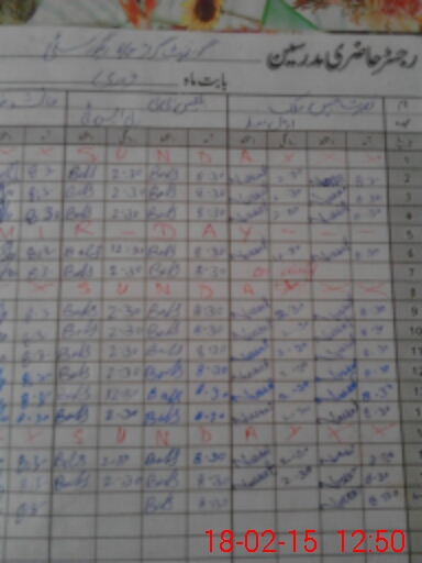 | CNIC | Full Name | Designation | R/C | Absence During Last Calender Month |