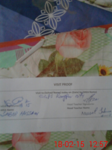 | Attendance Register | Head Teacher | MEA with School | Visit Proof |