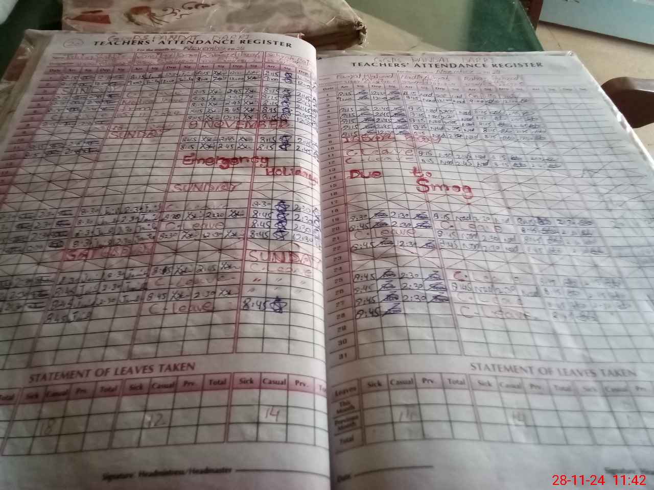 | Leave | Duty | Absent | Maternity | Medical | Ex- Pak |