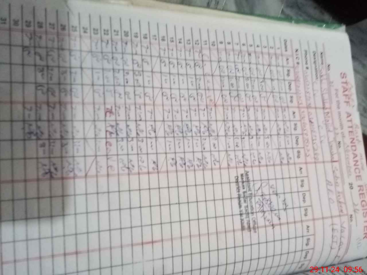| CNIC | Full Name | Designation | R/C | Absence During Last Calender Month |