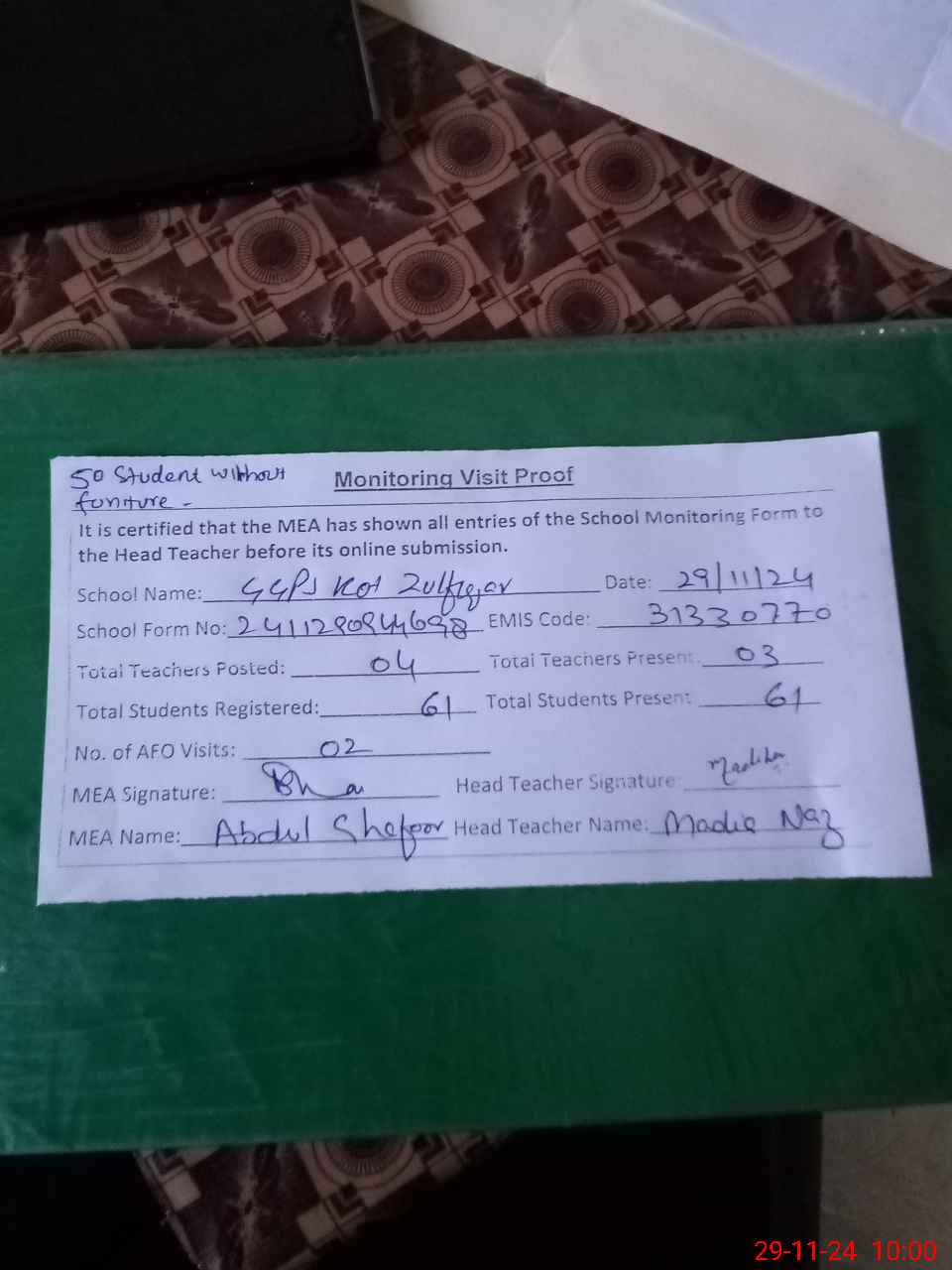 | EMIS Code: 31330770 | Name of School: GGPS KOT ZULFAQAR ALI | |||