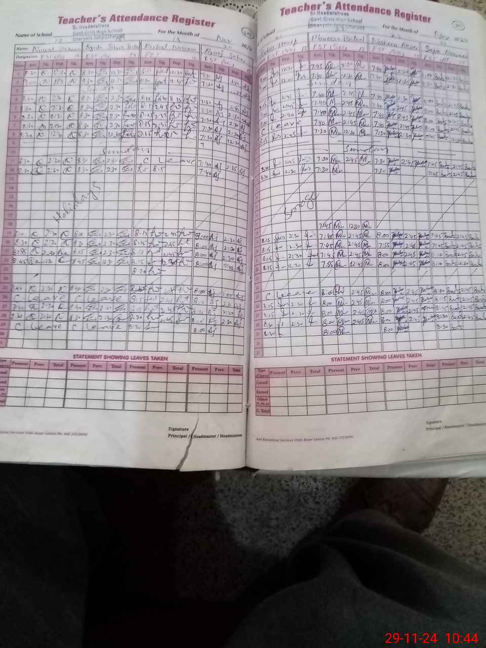 | Leave | Duty | Absent | Maternity | Medical | Ex- Pak |