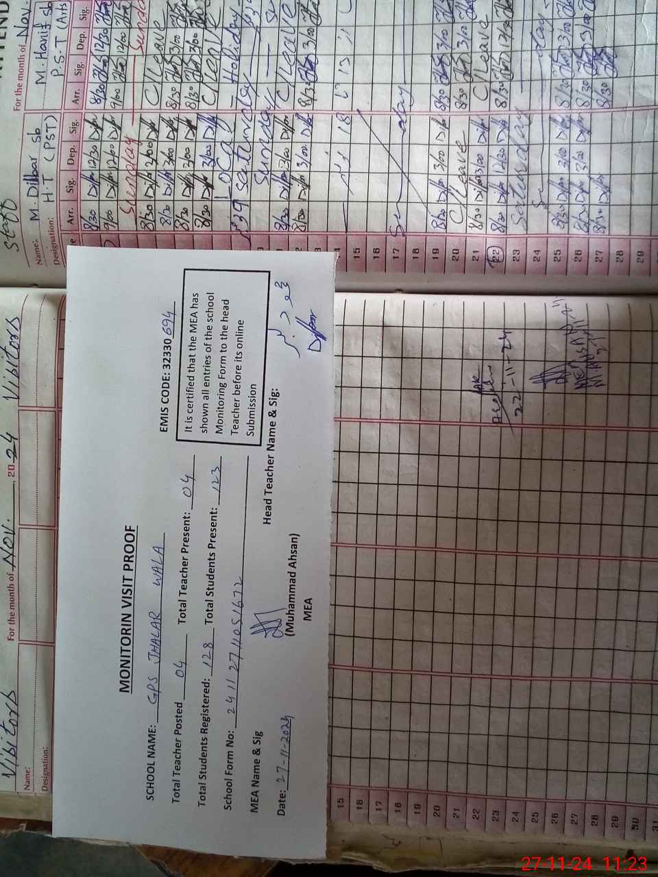 | EMIS Code: 32330694 | Name of School: GPS JHALAAR WALA | |||