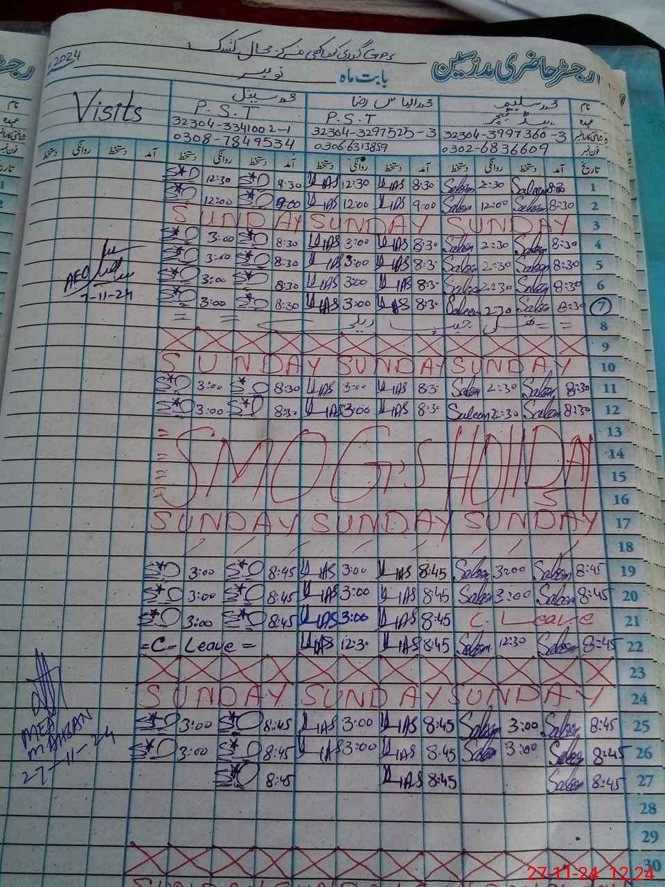 | Leave | Duty | Absent | Maternity | Medical | Ex- Pak |