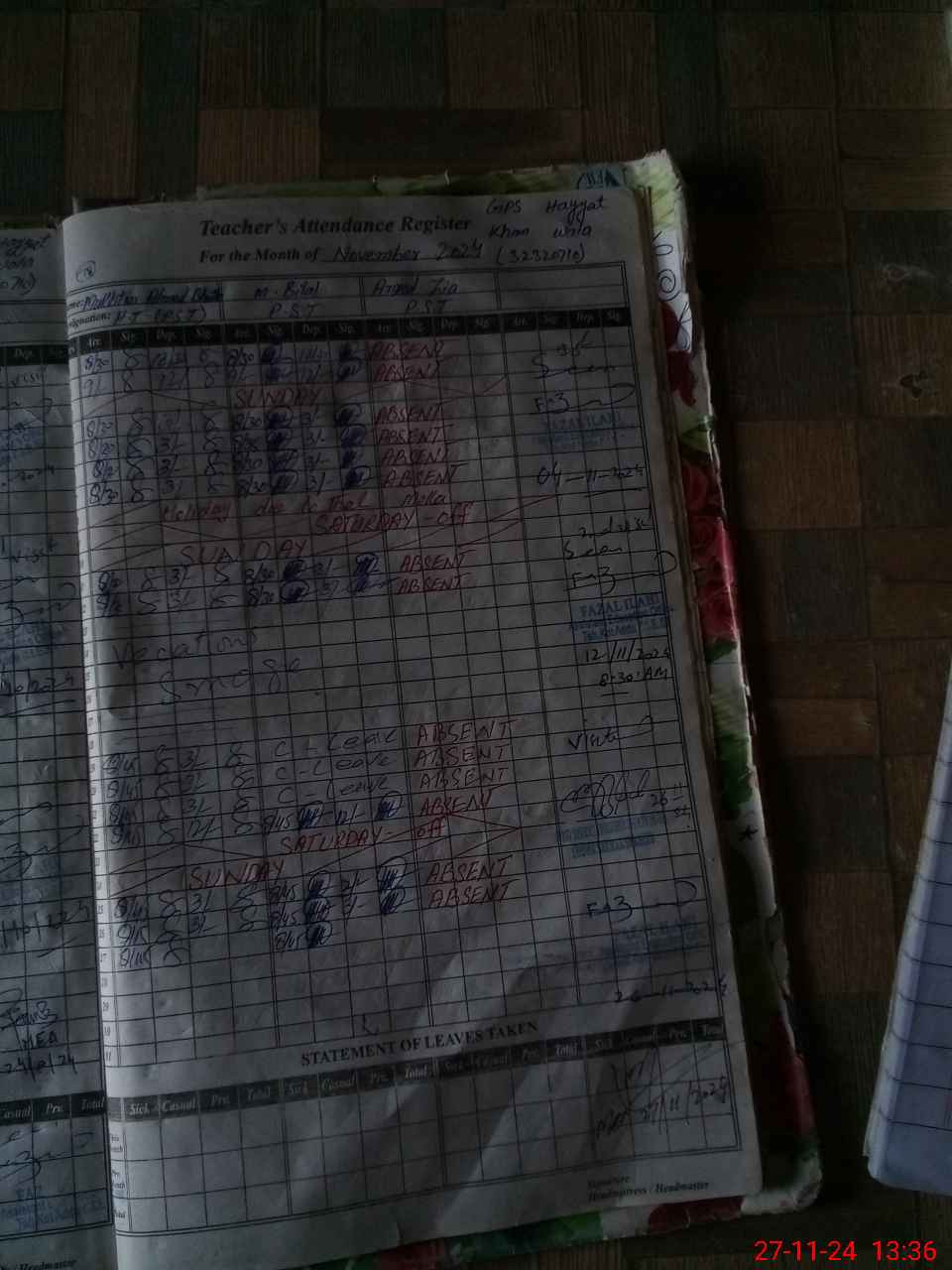 | 32**** | Am**** Zi**** | 1 | 1 | 0 | 0 | 0 | 0 | 0 | 0 | 0 | 0 | 0 | Absent (Un-Authorized) |