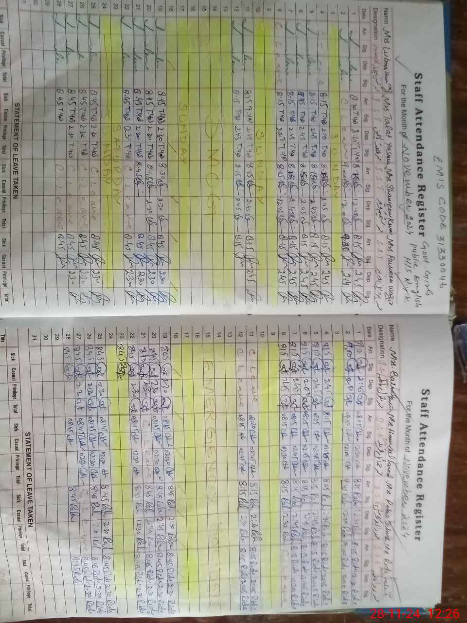 | Leave | Duty | Absent | Maternity | Medical | Ex- Pak |