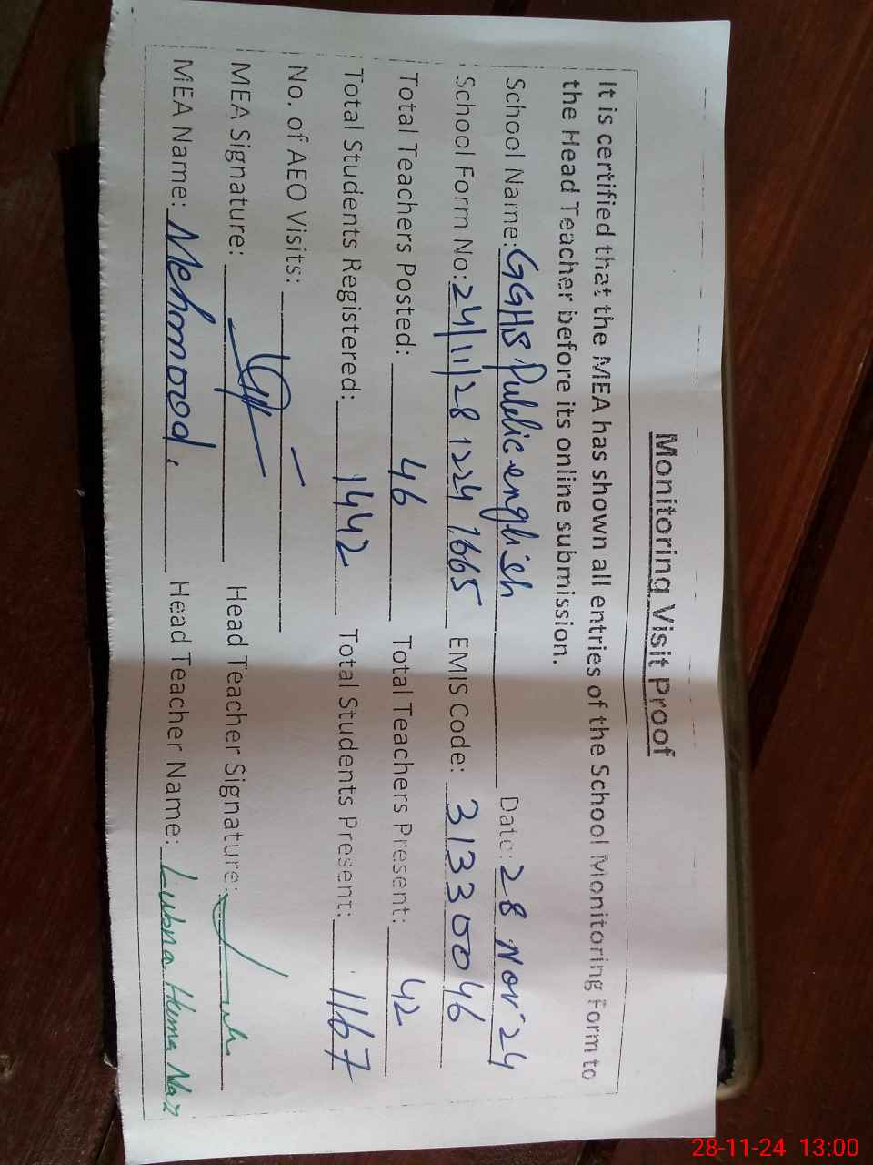 | EMIS Code: 31330046 | Name of School: GGHS PUBLIC ENGLISH MOHALLA CH. NAIKE | |||