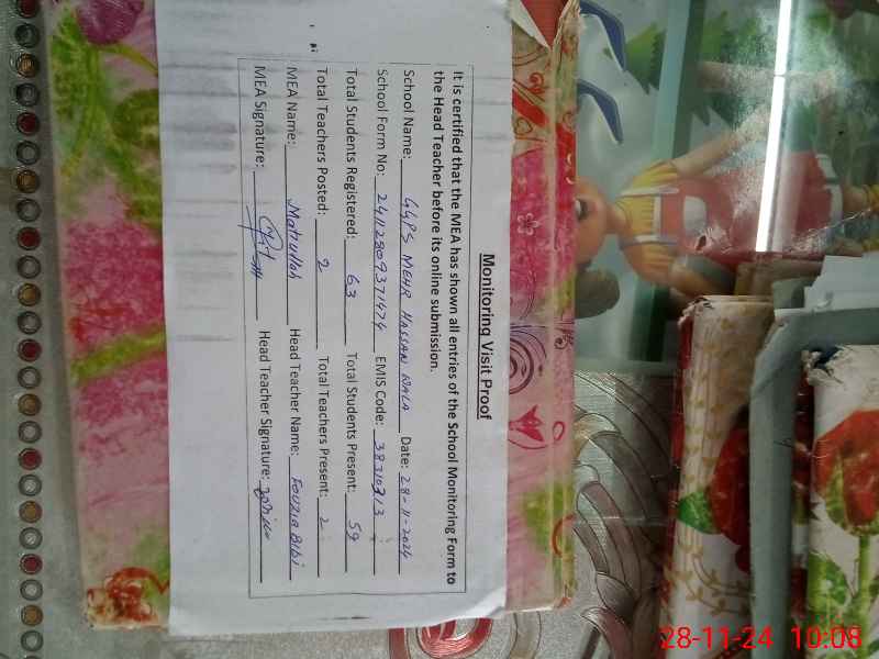 | EMIS Code: 38310313 | Name of School: GGPS MEHR HASSAN WALA | |||