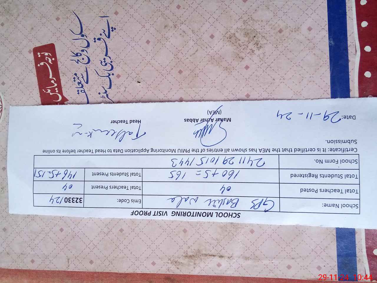 | EMIS Code: 32330124 | Name of School: GPS BASHIR WALA | |||