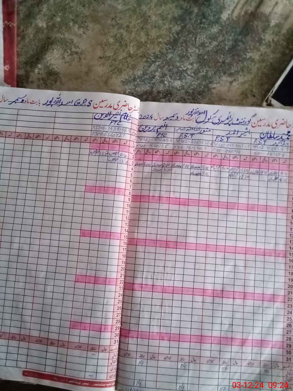 | Name: MU**** SU**** Designation: (School Headmaster's/Headmistress's) PST Phone/Cell Number: 03**** |