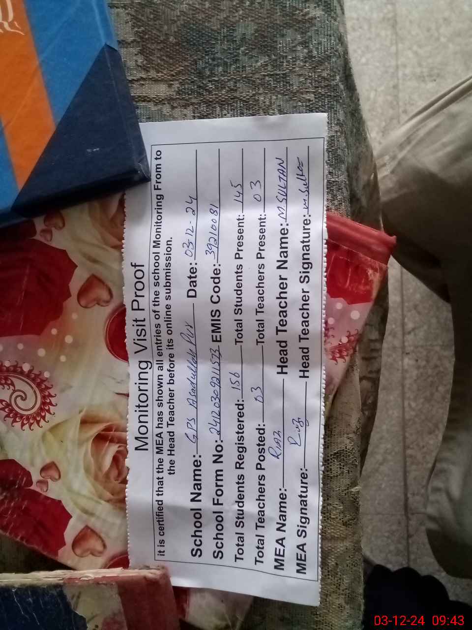 | EMIS Code: 39210081 | Name of School: GPS ASADULLAH PUR | |||