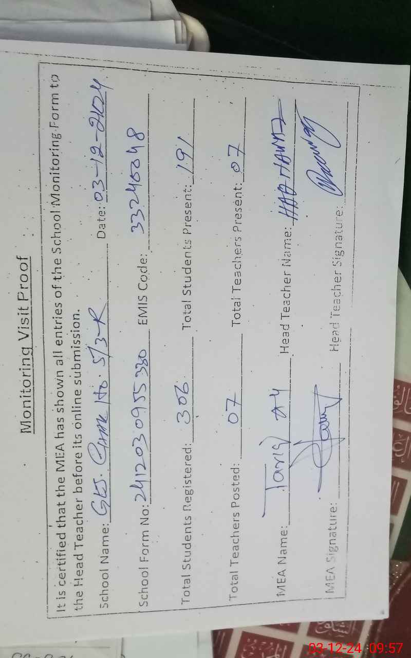 | EMIS Code: 33240048 | Name of School: GES CHAK NO. 5/3-R | |||