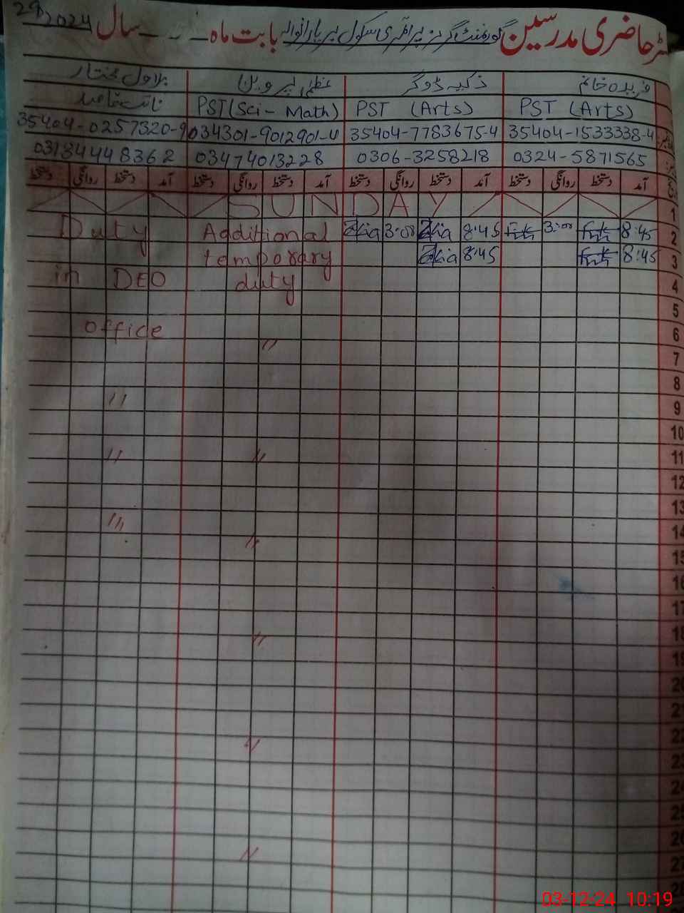 | Name: Za**** Do**** Designation: (School Headmaster's/Headmistress's) PST Phone/Cell Number: 03**** |