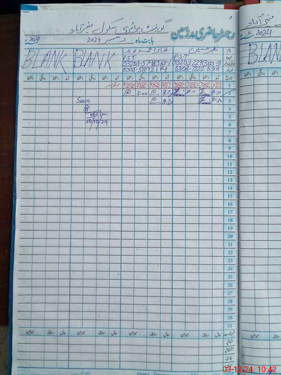 | Name: MA**** HU**** Designation: (School Headmaster's/Headmistress's) PST Phone/Cell Number: 03**** |