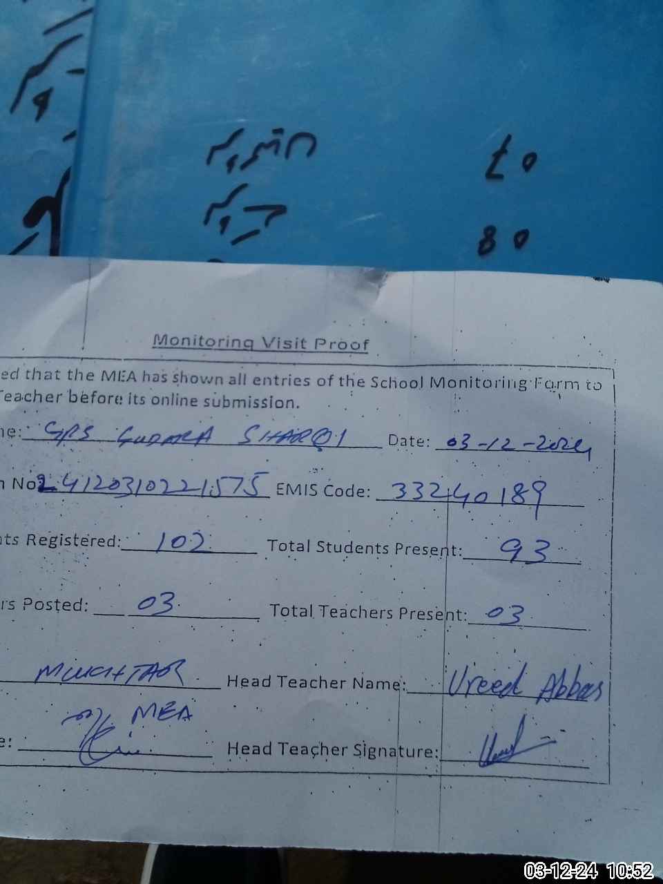 | EMIS Code: 33240189 | Name of School: GPS GUDARA SHARQI | |||