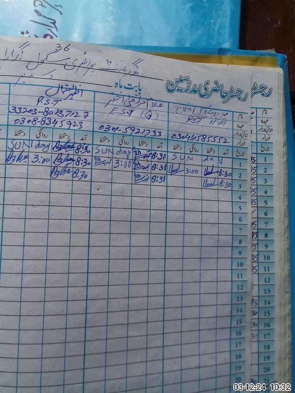 | Name: Ur**** Ab**** Designation: (School Headmaster's/Headmistress's) PST Phone/Cell Number: 03**** |