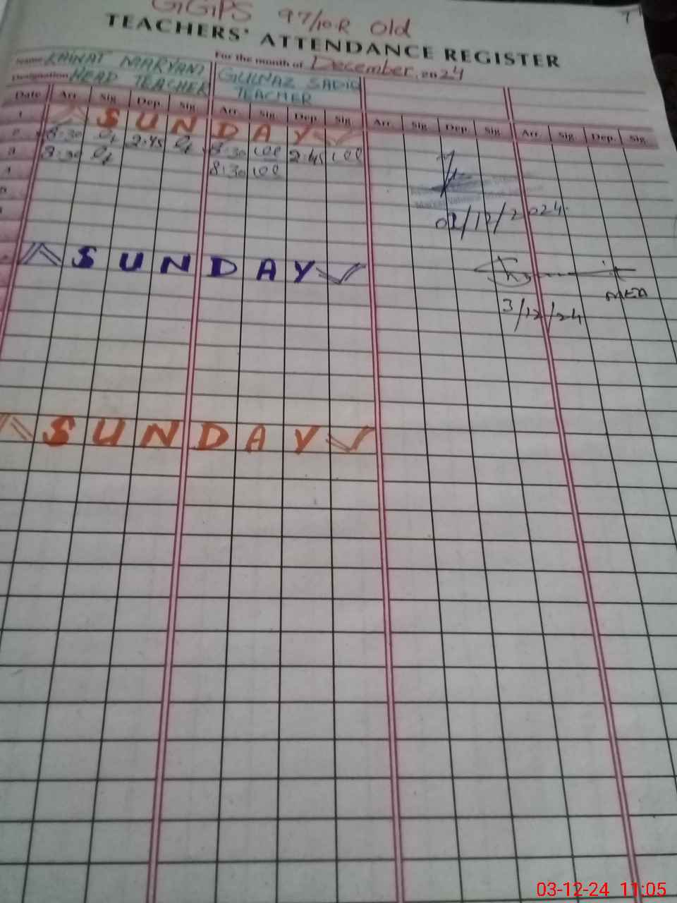 | CNIC | Full Name | Designation | R/C | Absence During Last Calender Month |