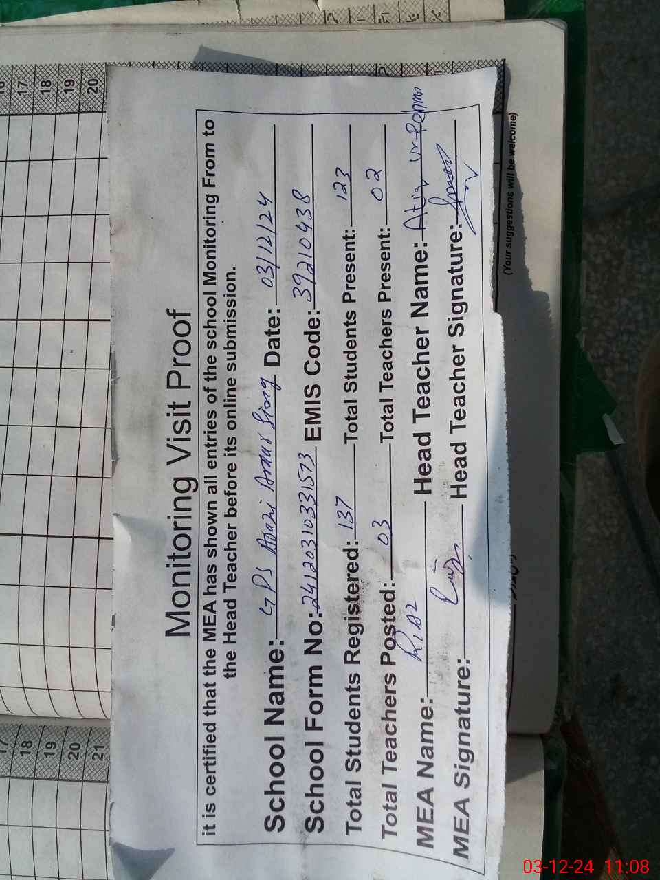 | EMIS Code: 39210438 | Name of School: GPS ARAZI AMAR SINGH | |||