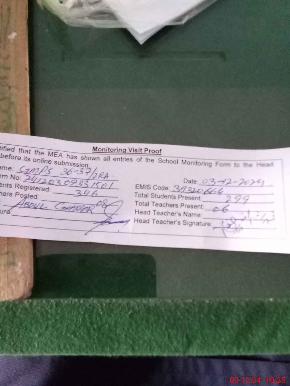 | EMIS Code: 39320664 | Name of School: GMES CHAK 36-37/2-RA | |||