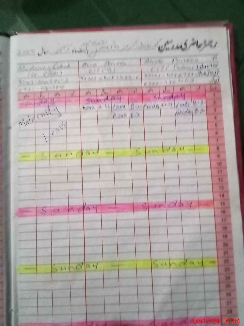 | 33**** | Mu**** Ru**** | Contract | 0 | 0 | 0 | 0 | 0 | 0 | 0 | 0 | 0 | Maternity | |