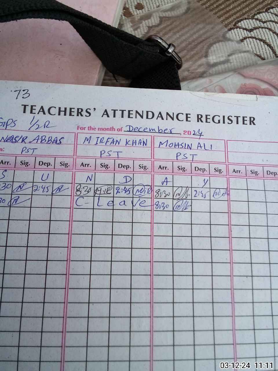 | Name: NA**** AB**** Designation: (School Headmaster's/Headmistress's) PST Phone/Cell Number: 03**** |