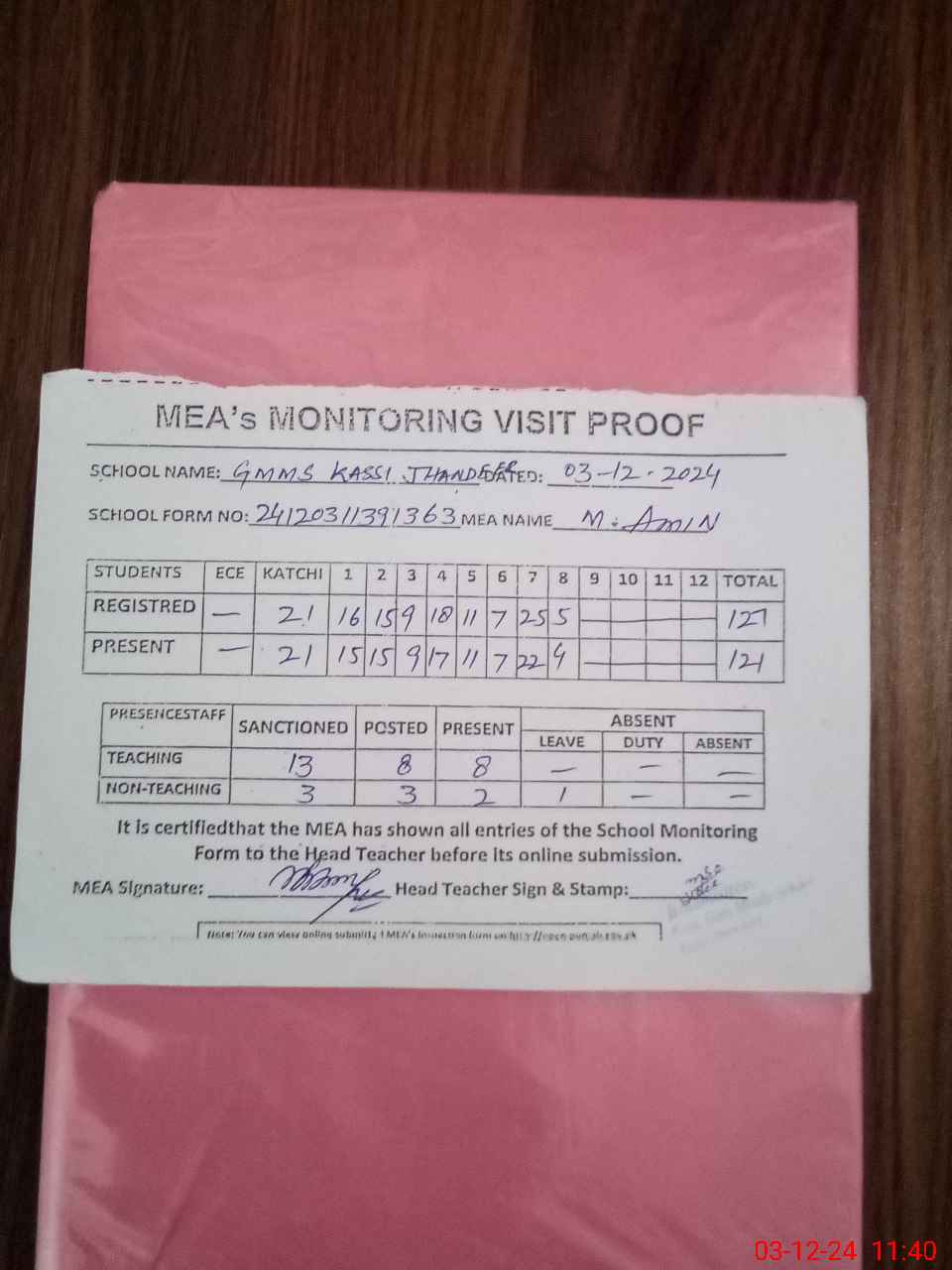 | EMIS Code: 36410631 | Name of School: GMMS KASSI JHANDEER | |||