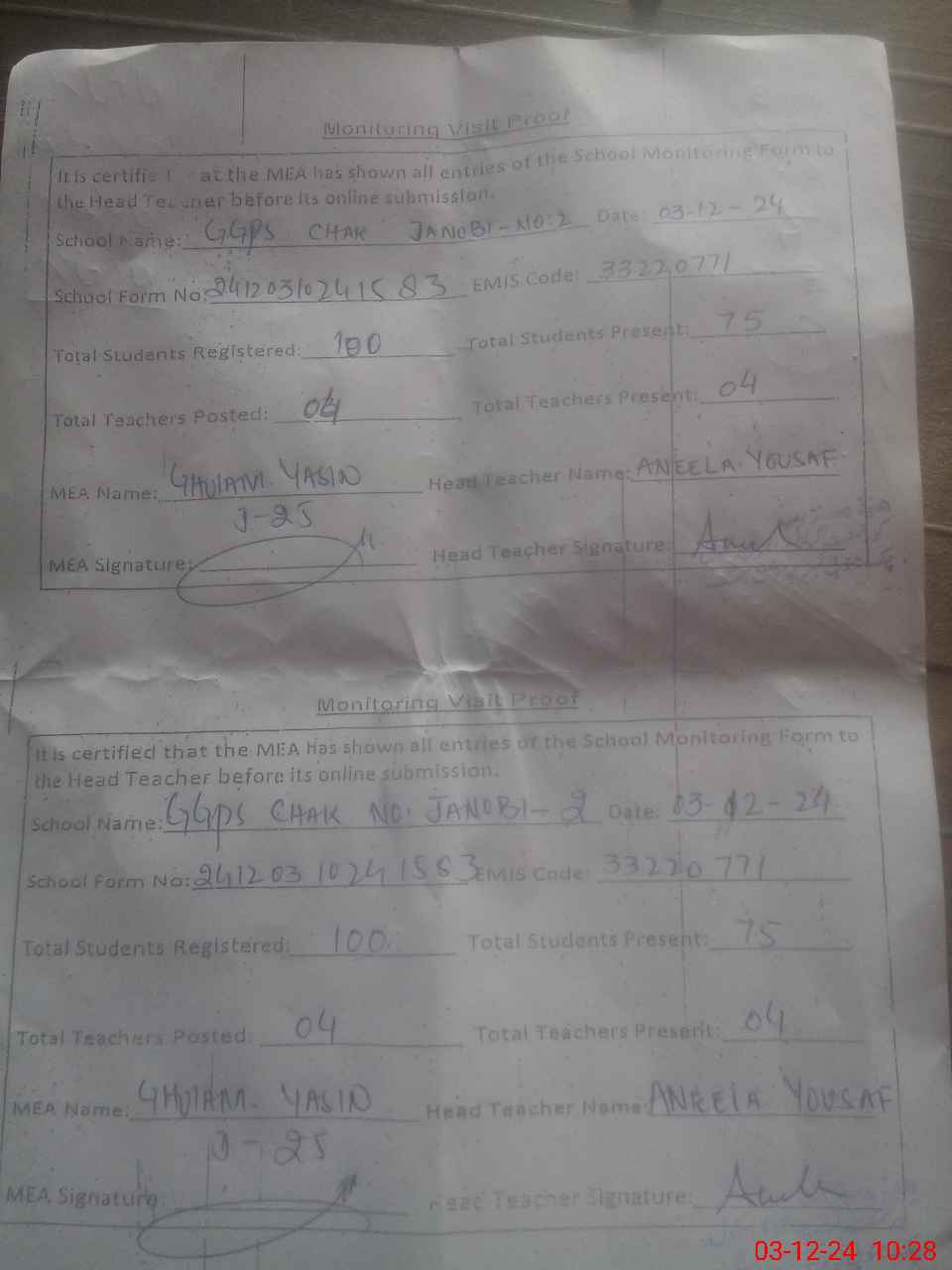| EMIS Code: 33220771 | Name of School: GGPS CHAK JANOOBI NO 2 | |||