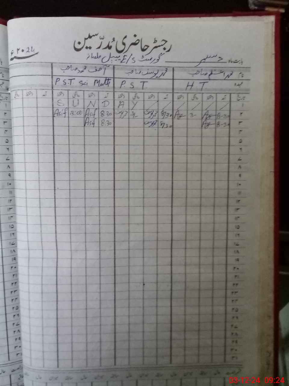 | CNIC | Full Name | Designation | R/C | Absence During Last Calender Month |