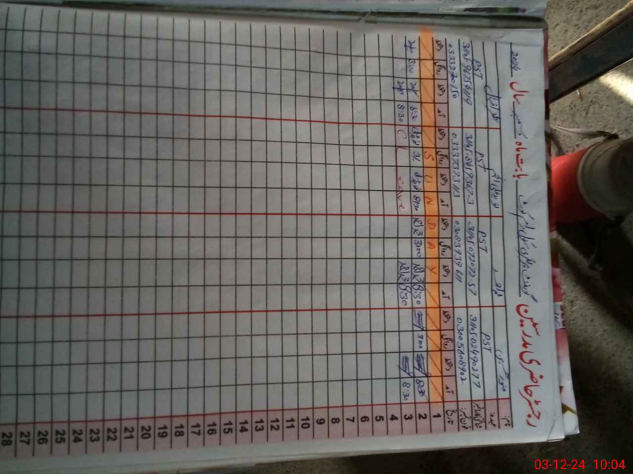 | CNIC | Full Name | Designation | R/C | Absence During Last Calender Month |