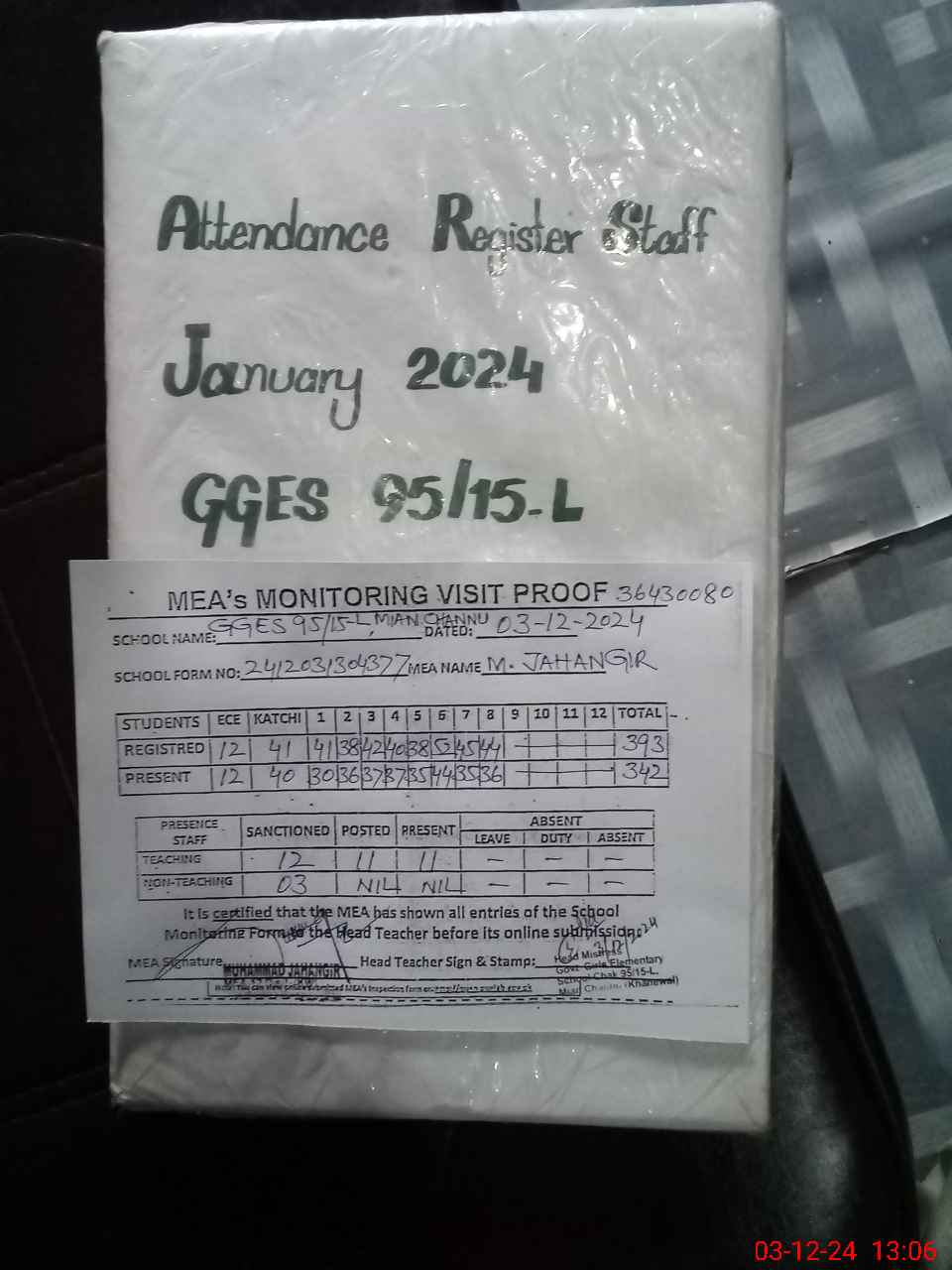 | Attendance Register | Head Teacher | MEA with School | Visit Proof |