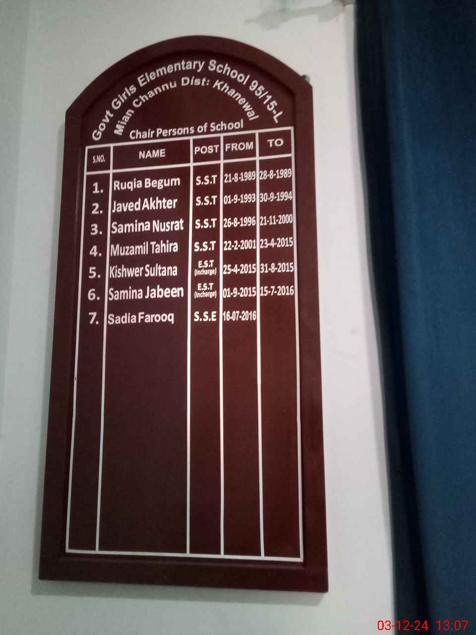 | Name: Sa**** Fa**** Designation: (School Headmaster's/Headmistress's) SSE (English) Phone/Cell Number: 03**** |
