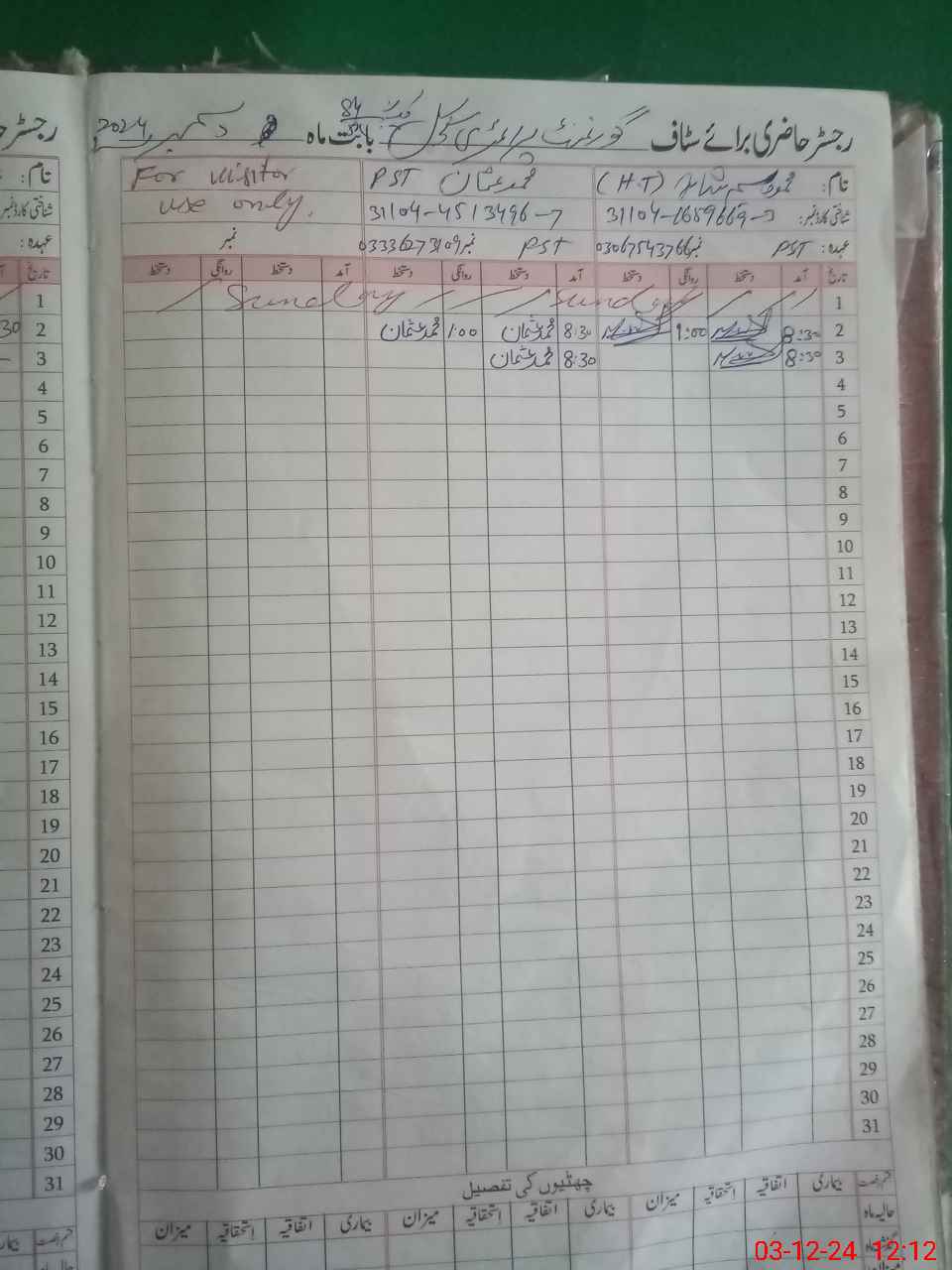 | Name: MU**** WA**** Designation: (School Headmaster's/Headmistress's) PTC/JV Phone/Cell Number: 03**** |