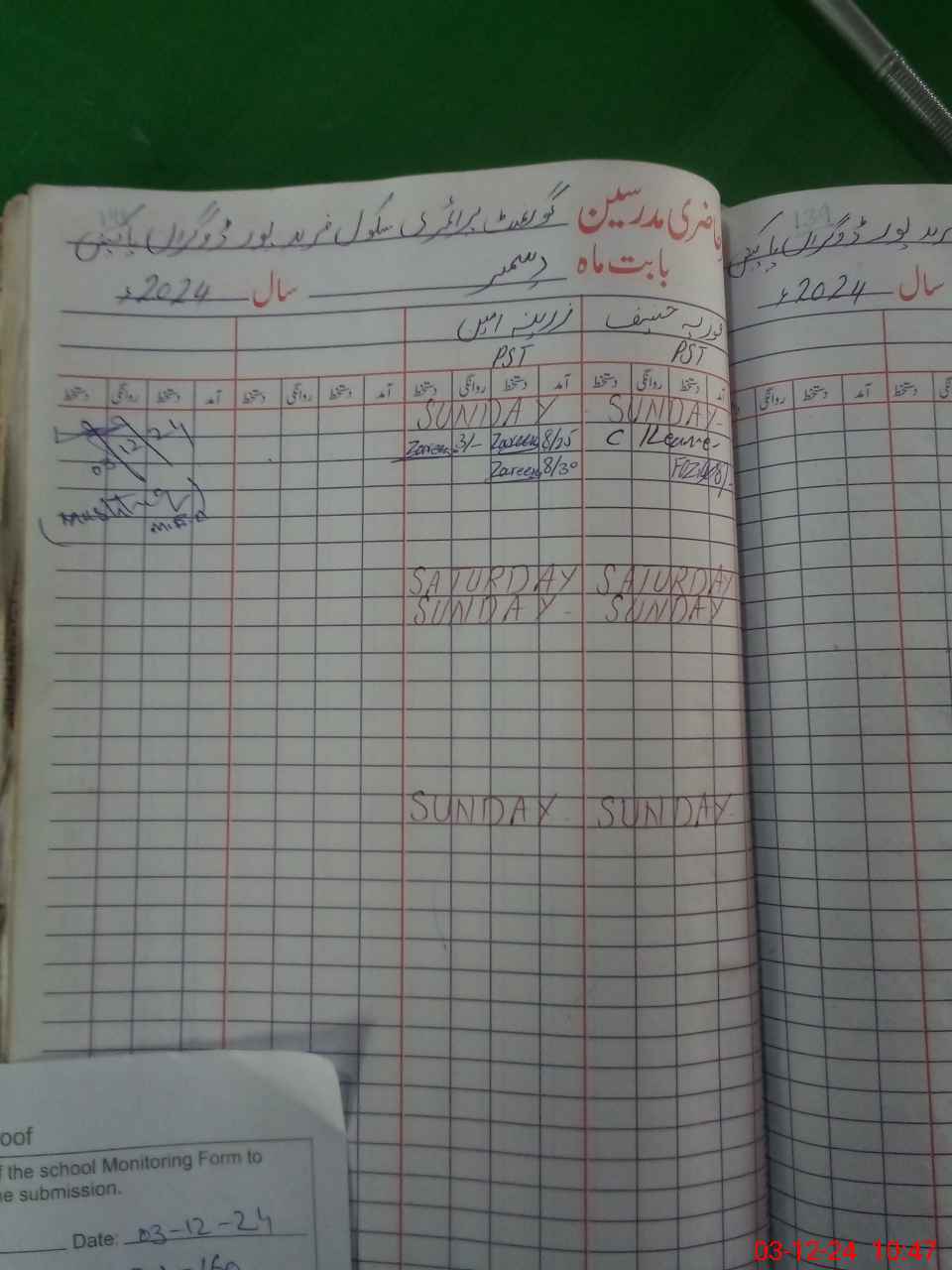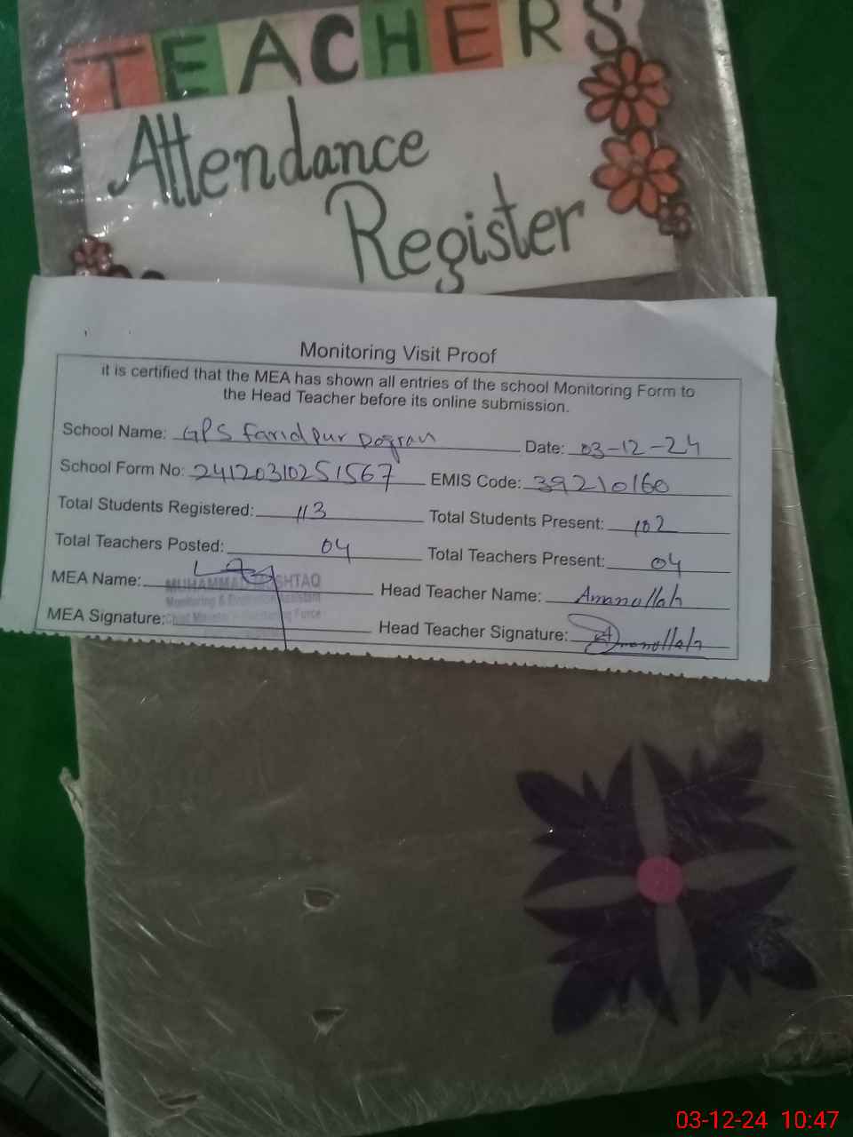 | EMIS Code: 39210160 | Name of School: GPS FARID PUR DOGRAN | |||