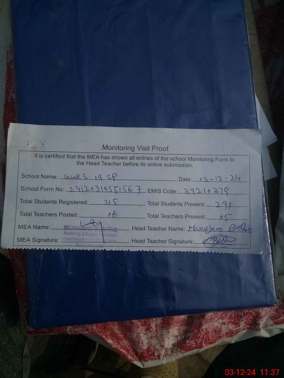 | EMIS Code: 39210379 | Name of School: GGES 19 SP | |||