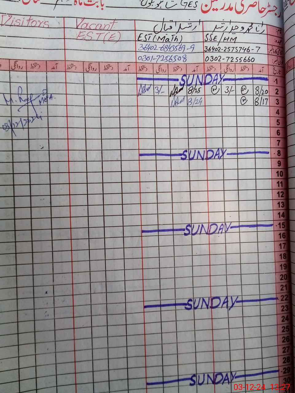 | Name: Ra**** Wa**** Ar**** Designation: (School Headmaster's/Headmistress's) SSE SC Phone/Cell Number: 03**** |