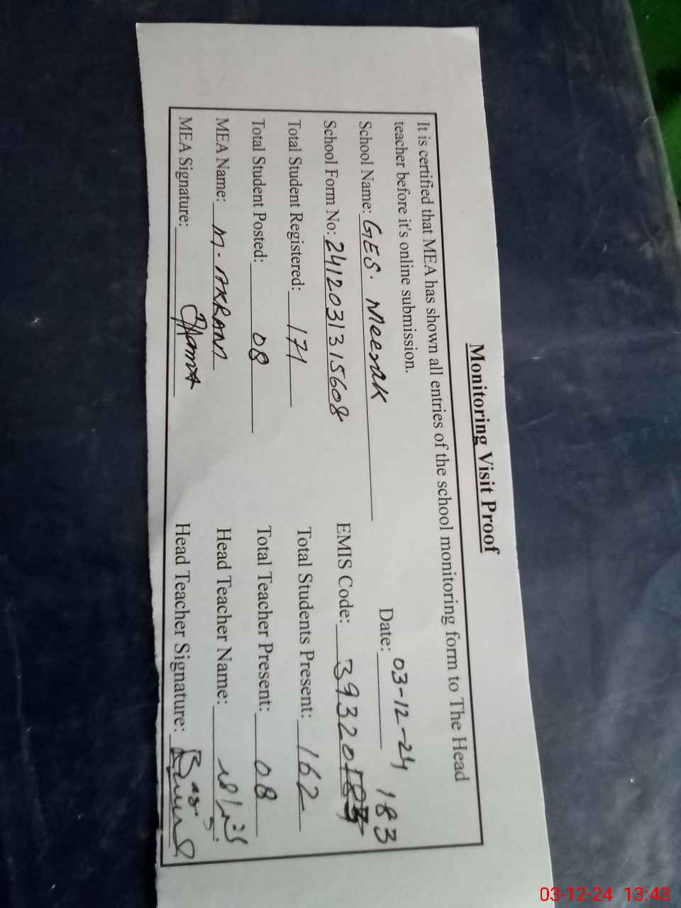 | EMIS Code: 39320183 | Name of School: GES MEERAK | |||