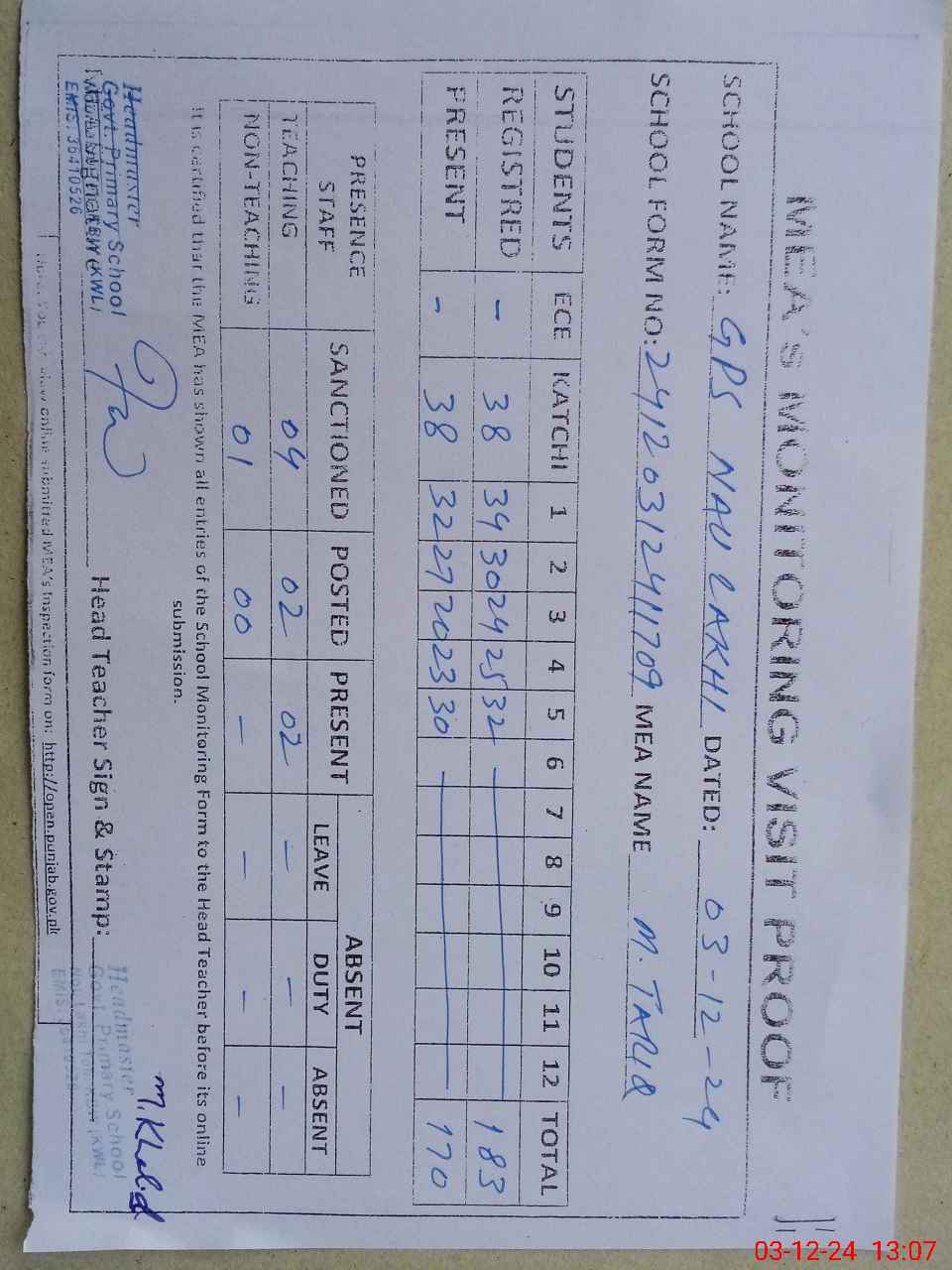 | EMIS Code: 36410526 | Name of School: GPS NAU LAKHI, P/O KOHI WALA, KABIRWALA | |||