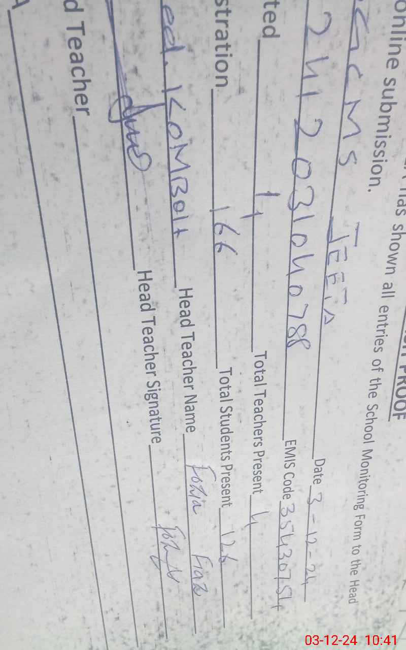 | Name: Se**** Sa**** Designation: (School Headmaster's/Headmistress's) PST Phone/Cell Number: 03**** |