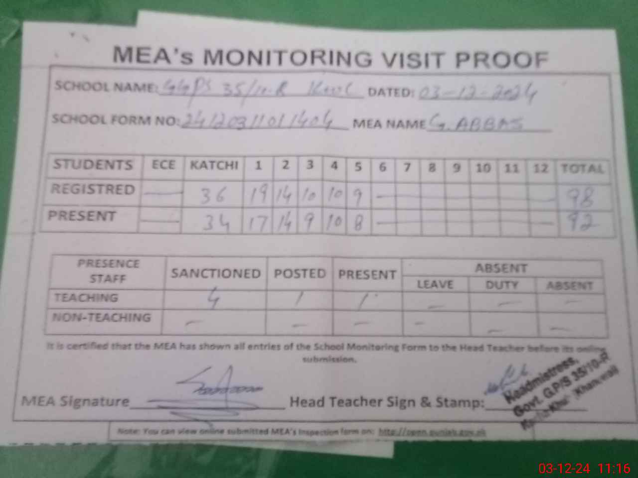 | EMIS Code: 36420473 | Name of School: GGPS 35/10-R, KACHA KHUH | |||