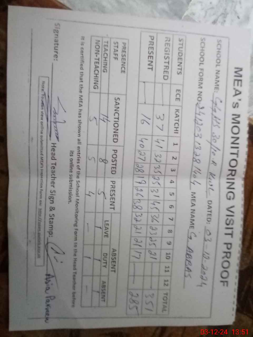 | EMIS Code: 36420114 | Name of School: GGHS 30/10-R, KACHA KHUH | |||