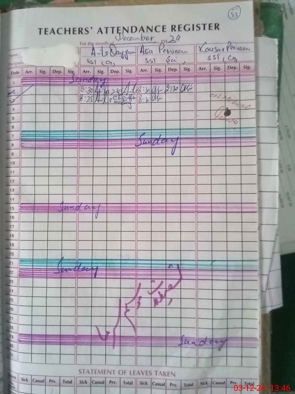| 36**** | Ka**** Pe**** | 1 | 0 | 0 | 30 | 0 | 0 | 0 | 0 | 0 | 0 | Absent (Un-Authorized) | |