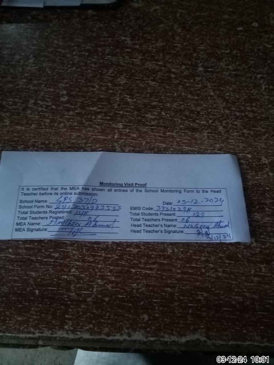 | EMIS Code: 39310298 | Name of School: GPS CHAK NO. 37/D | |||
