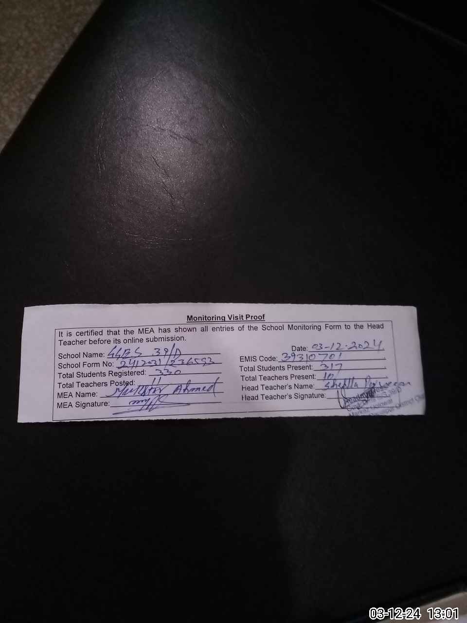 | EMIS Code: 39310701 | Name of School: GGES CHAK NO. 39/D | |||
