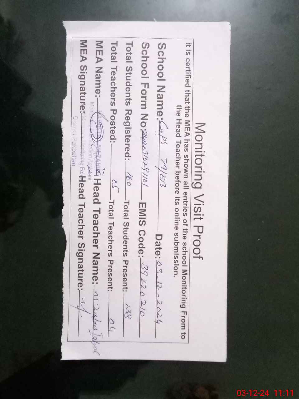 | EMIS Code: 39220210 | Name of School: GPS 79 EB | |||