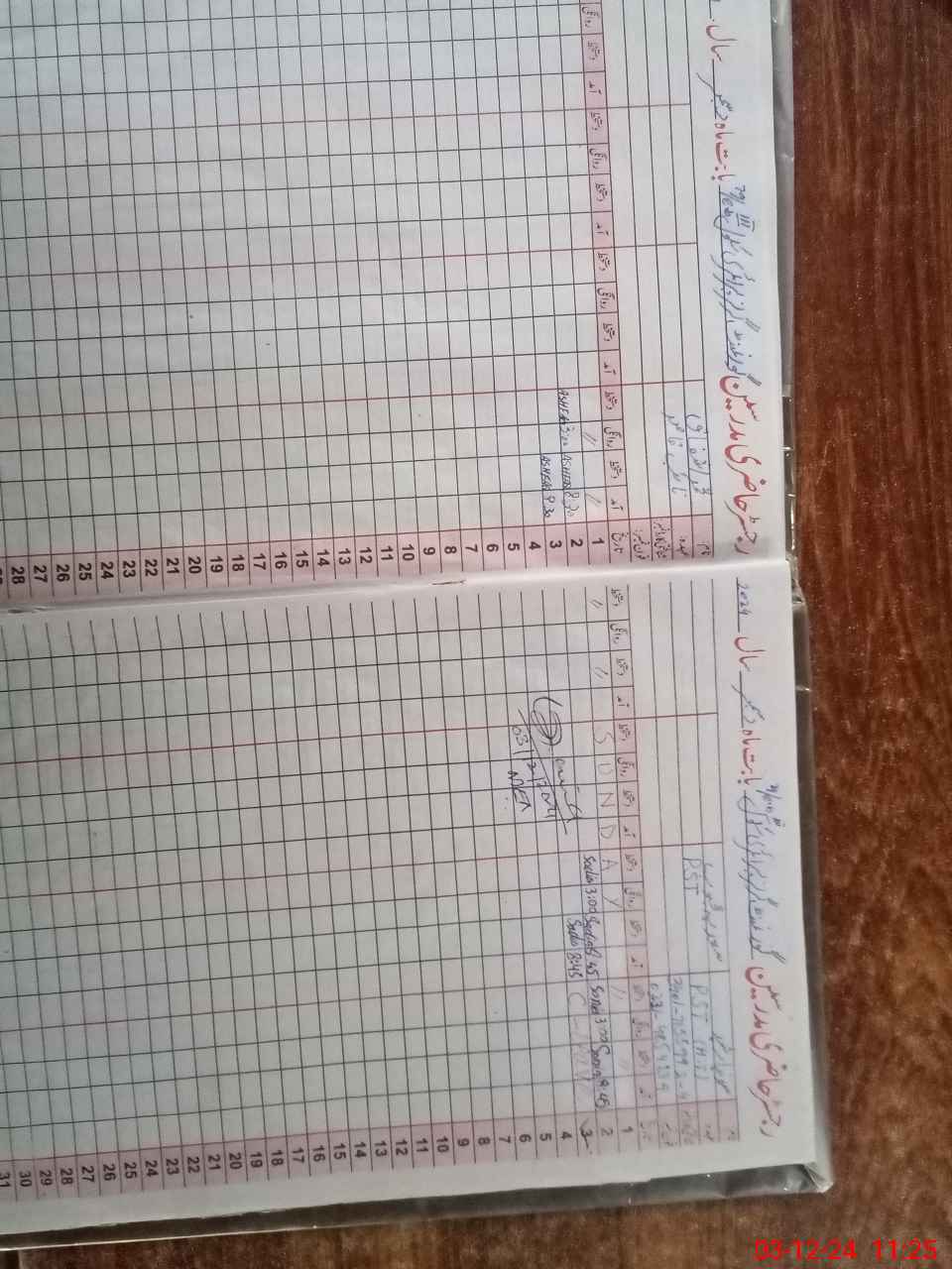| CNIC | Full Name | Designation | R/C | Absence During Last Calender Month |
