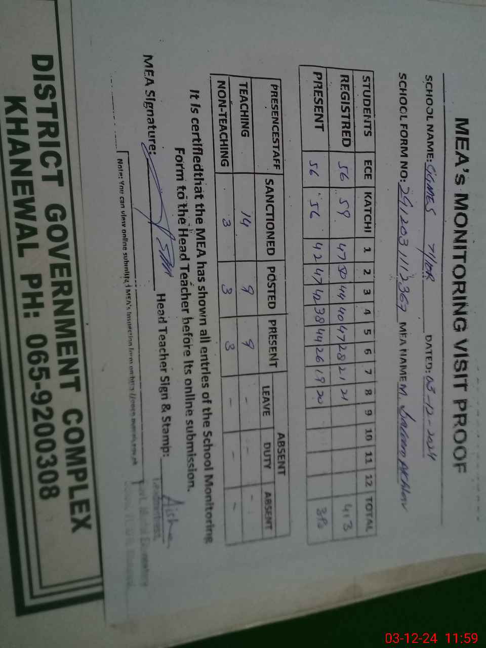 | EMIS Code: 36420106 | Name of School: GMES 71/10-R, KHANEWAL | |||