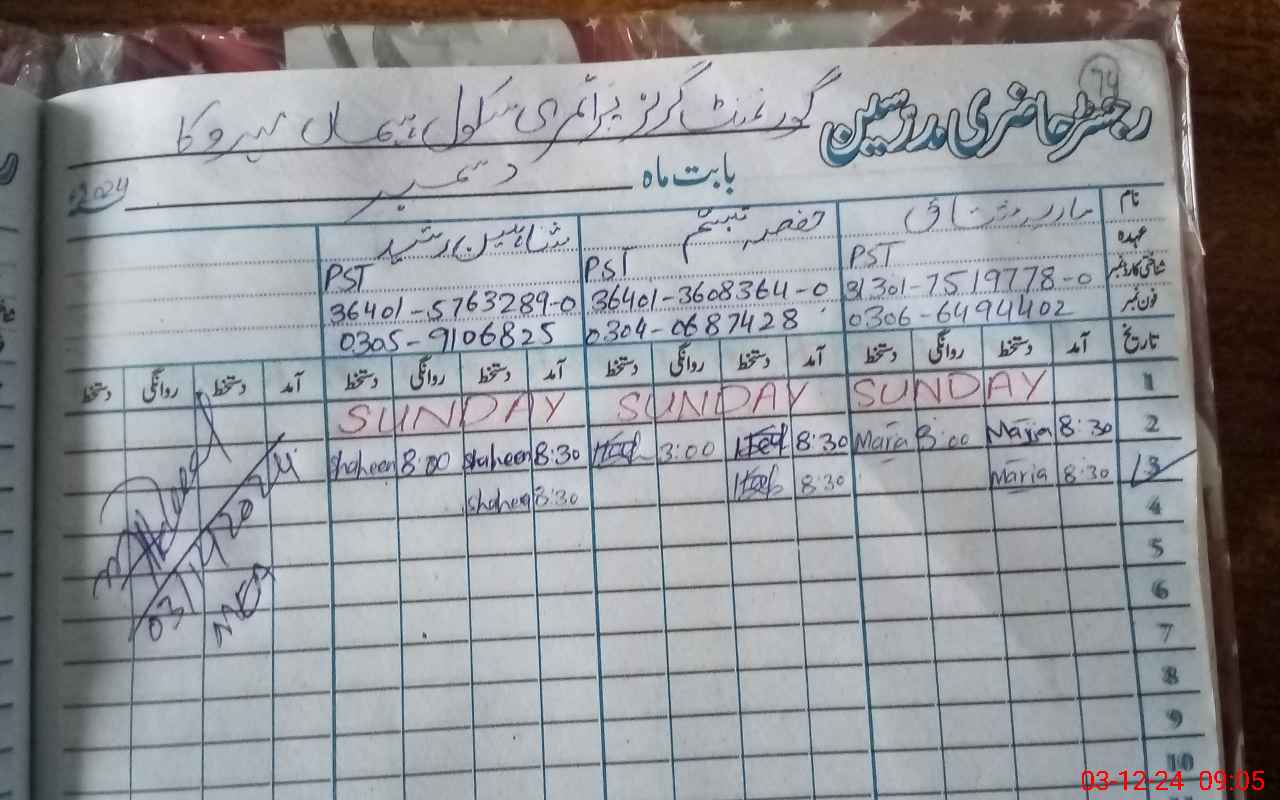 | Name: MA**** MU**** Designation: (School Headmaster's/Headmistress's) PST Phone/Cell Number: 03**** |
