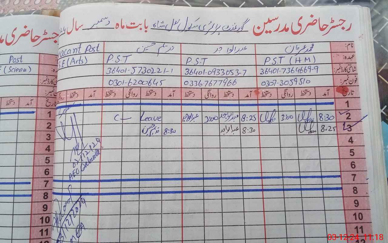 | Name: Mo**** Ir**** Designation: (School Headmaster's/Headmistress's) PST Phone/Cell Number: 03**** |