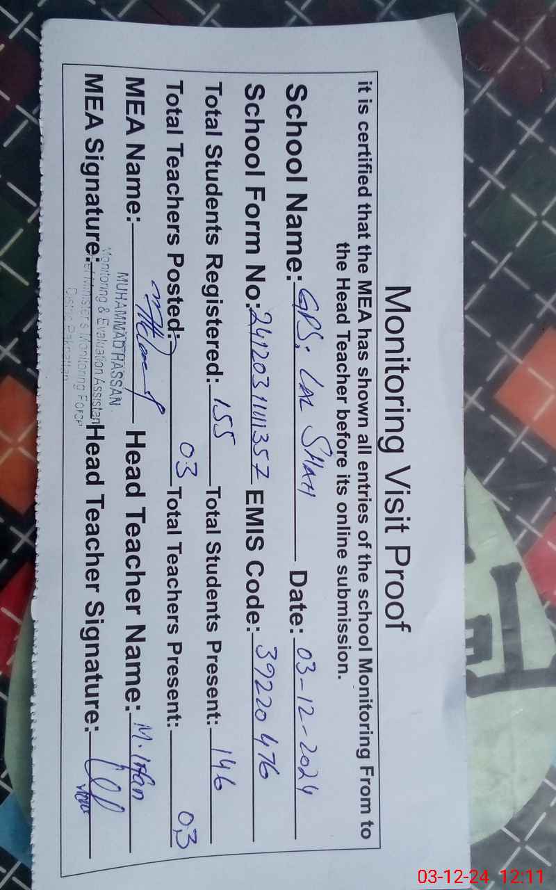 | EMIS Code: 39220476 | Name of School: GPS LAL SHAH | |||