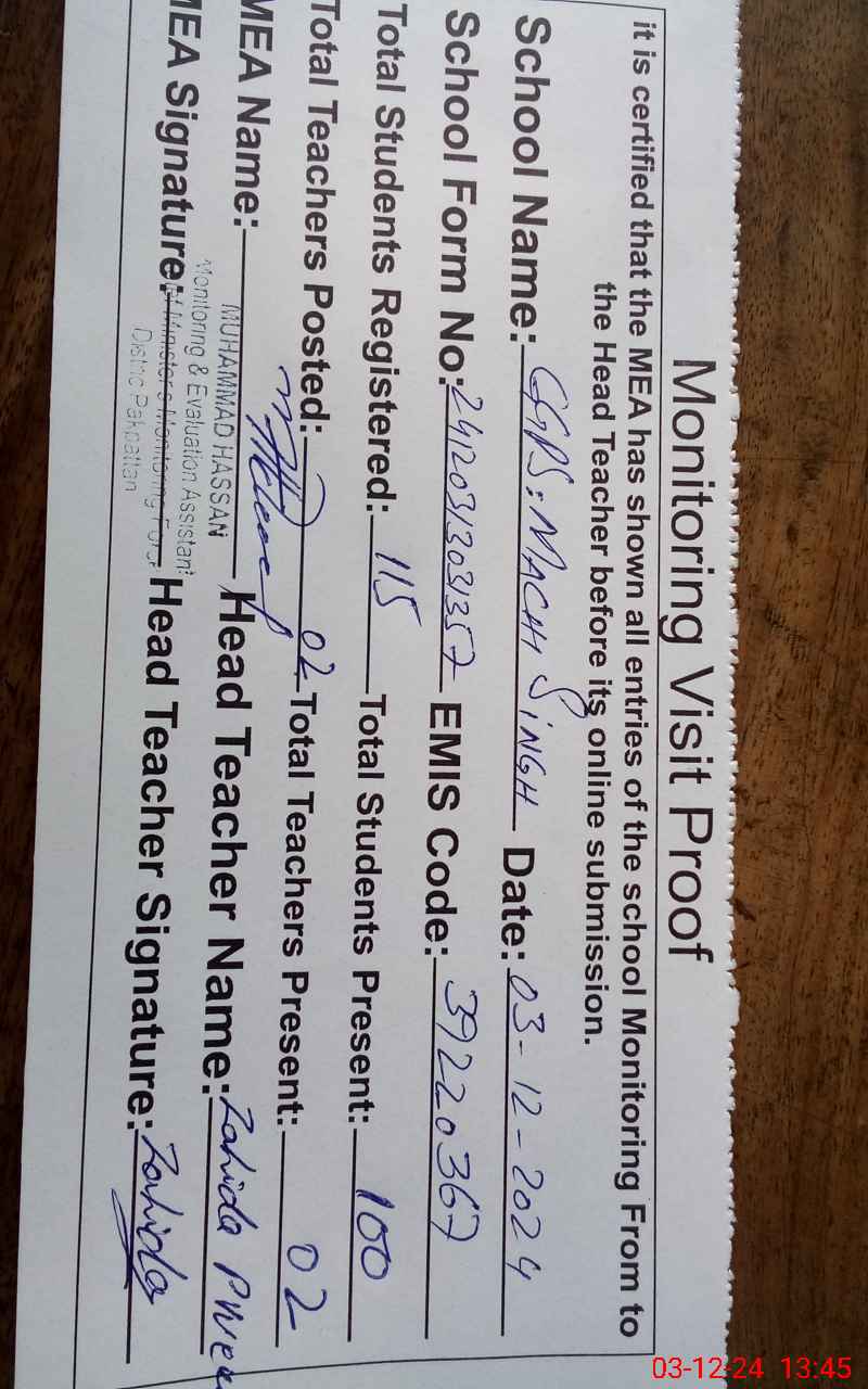 | EMIS Code: 39220367 | Name of School: GGPS MACHI SINGH 1 | |||